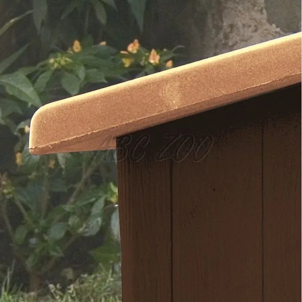 Domček pre psa z kvalitného nepremokavého plastu s imitáciou dreva. Na podlahe sú odkvapkávacie žliabky pripojené na odvodňovacie kanály. Strecha domčeka je schodovitá a nepremokavá, zabezpečí suchý interiér a zviera. Štyri protišmykové podložky sú umiestnené na nôžkach. Podlaha je vyvýšená nad zemou, takže búda pre psa sa nedotýka zeme a nepreniká zima odspodu. Domček má dvojitú stenu, slúži na lepšiu tepelnú izoláciu. Strecha sa dá pripevniť na búdu pevne pomocou spon. Cez leto môžete nechať priestor na ventiláciu vzduchu. Na zadnej strane sa nachádza ventilačné okno, ktoré sa dá jednoducho otvoriť a zatvoriť. Strecha sa dá odmontovať bielymi zátkami, čím hravo zvládnete čistenie búdy.