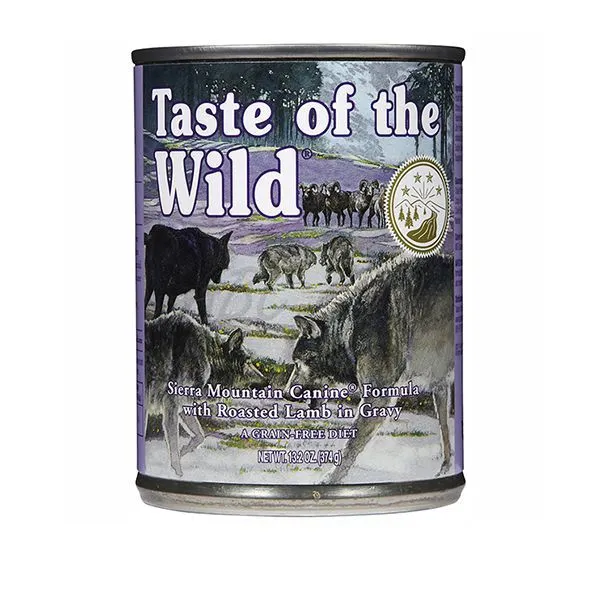 TASTE OF THE WILD Sierra Mountain Canine je kompletné konzervované  krmivo, určené pre všetky plemená psov, všetkých vekových kategórií. Krmivá tejto značky sú ocenené najvyšším možným hodnotením kvality organizácie Dog Food Analysis.
