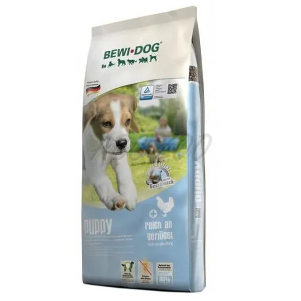 BEWI DOG PUPPY je kompletné krmivo pre šteňatá všetkých plemien do 4 mesiacov, aj na ďalší odchov mladých psov malých a stredne veľkých plemien. Vysoký obsah bielkovín pomáha budovať svaly, obsah hydiny pomáha k zdravému tráveniu. Celkovo posilňuje imunitu.