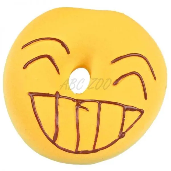Latexová pískajúca hračka pre psov - donut s motívom tváre.
