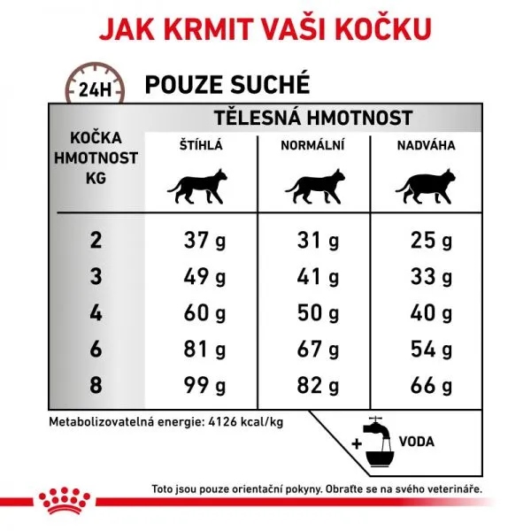 V prípade, že objednáte veterinárne granuly alebo konzervy, potvrdzujete tým, že vaša mačka bola vyšetrená veterinárom a ten na základe stanovenej diagnózy odporučil užívanie vami vybraného krmiva. Stav svojej mačky a odporúčané krmivo nezabudnite konzultovať s veterinárom minimálne raz za 6 mesiacov. Ak sa počas užívania krmiva stav vašej mačky zmení, vyhľadajte pomoc zverolekára.