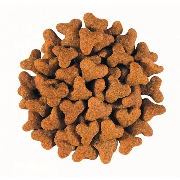 ZLOŽENIE: ryža, dehydratované hydinové bielkoviny, kukurica, pšeničný lepok*, živočíšne tuky, kukuričný lepok, semená a plevy psyllia (6 %), hydrolyzovaná hydinová pečeň, čakanková vláknina, minerálne látky, sušená vaječná hmota, rybí tuk, sójový olej, kvasnicové produkty, mono- a diglyceridy kyselín palmitovej a stearovej esterifikované kyselinou citrónovou, frukto-oligosacharidy (0,47 %), hydrolyzované kvasnice (zdroj mannán-oligosacharidov) (0,19 %), výťažok z nechtíka lekárskeho (zdroj luteínu).