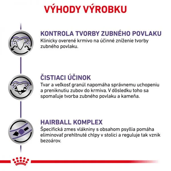 Krmivo pre mačky ROYAL CANIN® DENTAL získalo označenie VOHC: „POMÁHA REGULOVAŤ TVORBU ZUBNÉHO POVLAKU“, pretože ide o klinicky overené krmivo na účinné zníženie tvorby zubného povlaku.