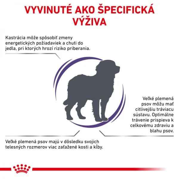 ROYAL CANIN® Neutered Adult špeciálne vyvinutý na pomoc kastrovaným psom veľkých plemien udržať si optimálnu hmotnosť.