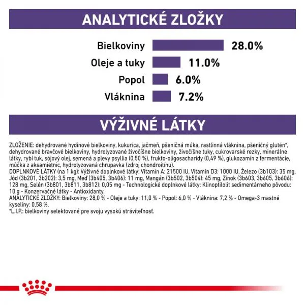 Ako súčasť veterinárneho radu ROYAL CANIN® je dôležité, aby sa tento produkt podával vášmu domácemu miláčikovi iba na odporúčanie veterinárnym odborníkom. Prechod vášho domáceho maznáčika z jednej stravy na druhú by mal byť plynulý a postupný proces v priebehu 7–10 dní. Uistite sa, že dodržiavate správne množstvo, najmä pri zmiešanom kŕmení.