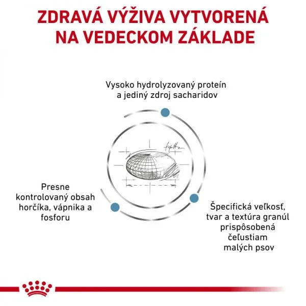 Špeciálna hypoalergénna veterinárna diéta pre dospelé psy malých plemien do 10 kg trpiace potravinovými alergiami a problémami s trávením.