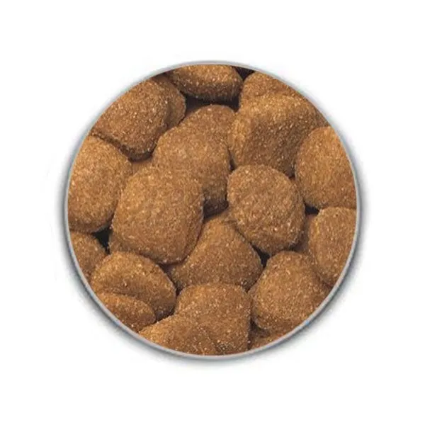 Zloženie: múčka z hydinového mäsa (19%), kukurica, jačmeň, ryža (8%), múčka z jahňacieho mäsa (6%), pivovarské kvasnice, hydinový tuk, rastlinný olej, cukrovarské rezky, ľanové semená, hydinová pečeň, chlorid sódny, chlorid draselný